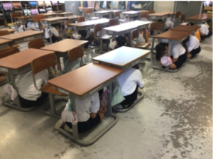 先月の岐阜市防災月間を受けて、城西小学校では、10月5日(日)~10日(金)を「城西小学校防災週間」と位置付けました。5日(日)に行われた城西地区防災訓練に地域の方たちと一緒に城西小学校体育館に自主的に避難集合し、心肺蘇生訓練・担架作成訓練・スローバックによる救出訓練などを体験しました。また、6日(月)には、「シェイクアウト訓練」を実施し、①まずひくく②あたまもまもり③うごかない、の3つの安全行動を1分間行い、防災に関わる動画を視聴したり、学校内の危険箇所についてみんなで考えたりしました。いつ何時起きるかわからないさまざまな災害に対して、「自分の命は自分で守る」意識を高めていけるようにしたいです。