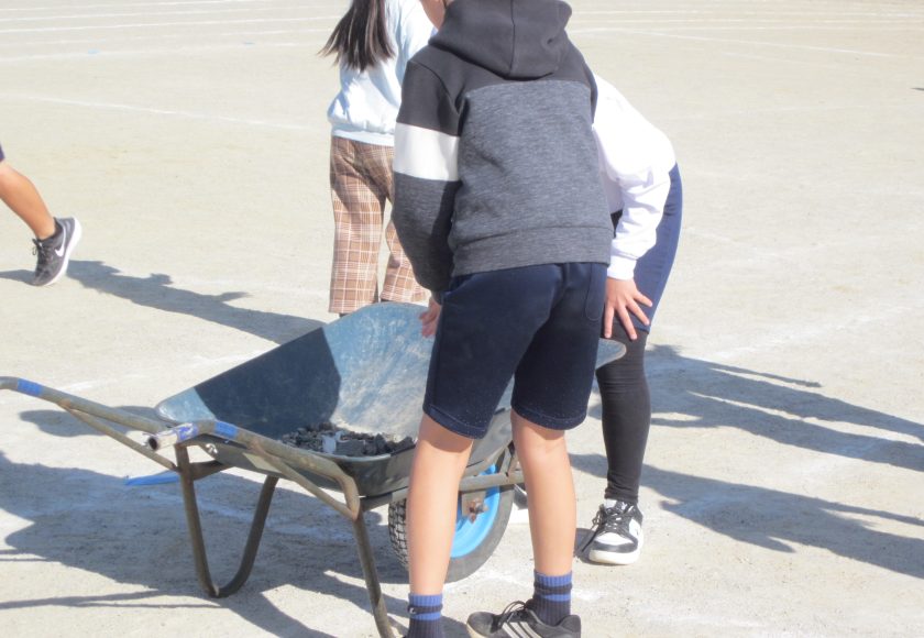 運動会を前に、子どもたちから「運動場の石拾いをしたらどうか」という提案がされました。代表委員会で話し合った結果、「ボランティアを募集して、石拾いをしよう」ということになりました。執行委員が中心となり、全校に呼び掛けて実現しました。自分たちの学校をよりよくしていくために、自分たちができることを考え、実践できました。