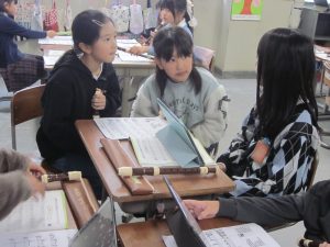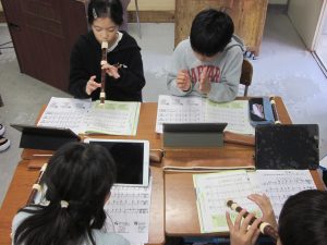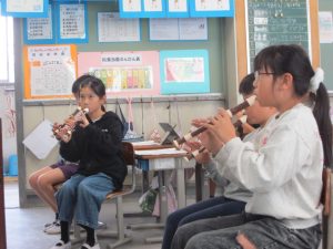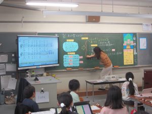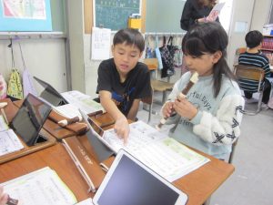中学年部の「学年部研究会」を行いました。3年1組の音楽の授業で、歌唱やリコーダーの指導について職員で学び合いました。曲を聴いてイメージをもったり、拍子やリズムなど、旋律の特徴を感じ取ったりすることができるように、日々の授業に取り組んできました。今日の授業では、「あの雲のように」をリコーダーで演奏し、リズム・拍子・旋律のまとまりなど、3拍子に合った感じを生かして演奏できるように、考えた表現の工夫を意識して練習をしました。また、仲間の演奏のよさを見つけたり、アドバイスをし合ったりしながら、互いの演奏を聴き合い、自分に取り入れながら表現する姿が見られました。振り返りでは、「前は最後がしっかりのばすことができなかったけど、今日はアドバイスをもらってできたので良かった。」と、1時間の学びを確かめていました。