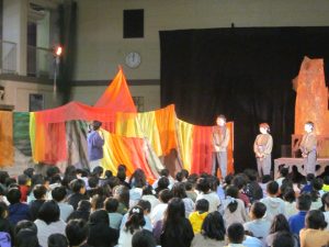 芸術の秋。全校児童を対象に、芸術鑑賞会を行いました。今年は、人形劇団「むすび座」さんをお招きし、『小さな山神 スズナ姫』を鑑賞しました。