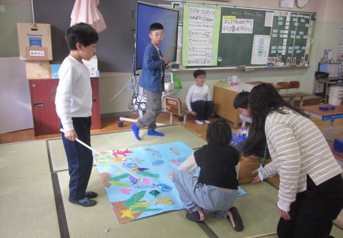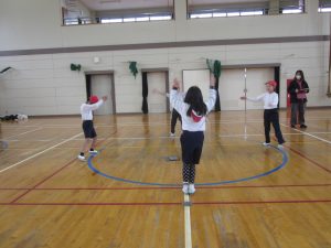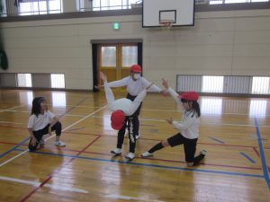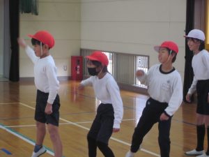 中学年部の「学年部研究会」を行いました。3年2組の体育の授業で、表現運動「リズムダンス」の学習を職員で学び合いました。「リズムに乗って、全身を使って大きく踊ることができる」という目当ての下、ペアやグループで、互いのダンスを見合ったり、真似したりすることを通して、仲間のよさを学んだり、自分の動きに取り入れたりすることができていました。どの子も楽しそうに体を動かし、表現する姿が見られました。各グループの完成したダンスが楽しみになる1時間でした。