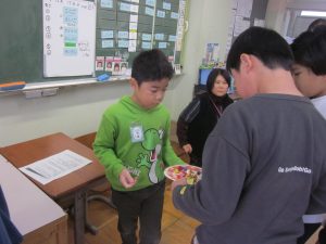 後日行われる「居住地校交流」に向けて、自分の役割を確認したり、台詞を聞いてもらい、アドバイスを受けたことをもとに、プログラム通りのリハーサルを行ったりしました。来てくれる仲間が「喜んでもらえるように」「みんなが楽しめるように」と、相手を意識して発表するなど、おもてなしの心を大切にできた1時間となりました。