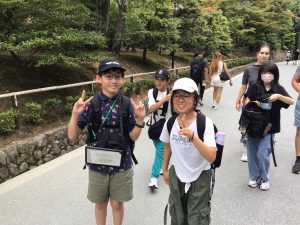 京都、奈良班別研修を終え、全グループ無事に奈良の宿泊先へ戻ってきました。1日を通して、たくさんの学びがあり、充実した時間を過ごすことができたようです。また、予定外の出来事もあったようですが、自分たちで考え、臨機応変に対応することもできたようです。実社会で生きて働く力を存分に身に付けることができました。宿泊先に戻った際は、とても疲れている様子でしたが、自分たちの力で行動し、無事戻ってきたことへの自信と満足感で満ち溢れていました。