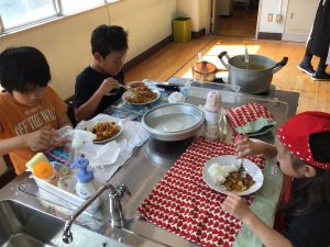 自分たちでつくった食事は、「おいしい!」とみんながおかわりをしていました。