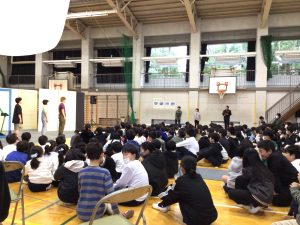 今日の3、4時間目に全校で、劇団風の子による「ギャングエイジ」を見ました。