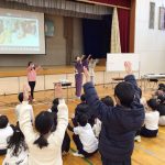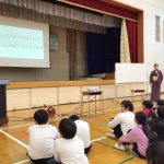 4年生は、お田植踊りの講師である大宝先生を招き、生き方についてお話を聞きました。