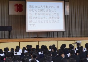 冬休み明けの全校集会で、本年度9回目の取組を行いました。