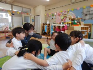 園長先生も来てくださり、ミニゲームをしたり、絵本を読んでくださったり、「みんなそれぞれ自分のやりたいことがあったけれど、ちゅうりっぷさんのことを考えて関わろうとしていたことが嬉しかったよ」と、気持ちを教えてくれたりしました。皆のことをそんな風に言ってもらえて私も嬉しかったです。