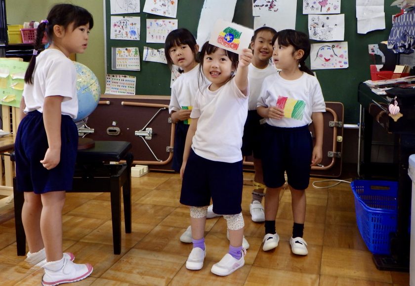 友達の姿を見て、自分も国旗を描いてみたり、クイズを出したりする子も増えてきました。