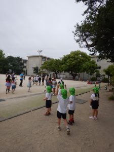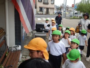 国旗クイズを”戸外で”行い(笑)(小学生が答えられず、嬉そうでした)