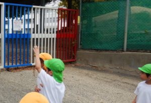 小学校の門がトリコロールに見える子ども達。こんなところにも外国を見つけられます。(柔軟な物の見方です!)