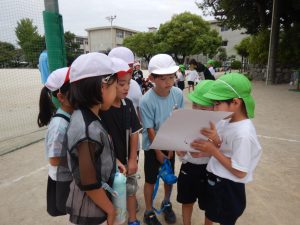 走る爽快感、負ける悔しさ、審判の楽しさや難しさを味わったりして、少しずつ自分たちのリレーの遊び方ができてきているように思います。