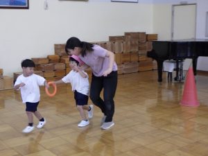 園庭での年中、年長児の姿を見て、いろいろな運動遊びをやってみたいという気持ちがどんどん高まってきたように感じます。