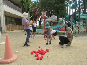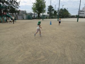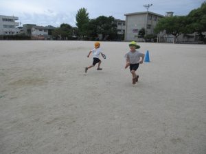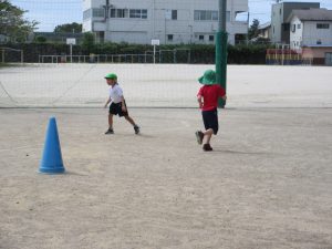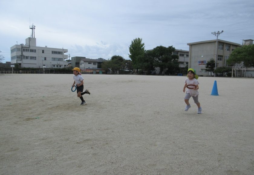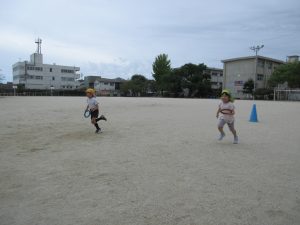 また、今日は、年長児の友達と一緒にリレーを楽しみました。