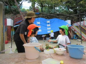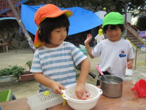 もちろん、虫探しや園庭の草花で作る色水ジュースなどの遊びも楽しんでいます。