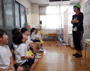 ①お水を飲む②朝ごはんを食べる③繊維のものを食べる④体を動かす⑤トイレタイムをつくるになります。「朝ごはん食べてる!」「野菜はすき!」「夏にラジオ体操した」などと口々に言っていました。うんちが出なくてもトイレで力んでみてと話しました。今は出なくても習慣化していくと思うのでチャレンジしてみてくださいね。またやわらかいうんち・かたいうんち・びちゃびちゃうんちなどの話もしました。健康のバロメーターなので自分のうんちも確認できるといいですね!今週末に「けんこうせいかつカード」を配布しますので毎朝「あこがれのばななうんち」に会えるといいですね。