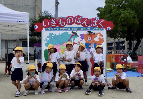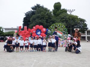 中国パビリオン、「ちょうちょうのように走る」では、自分の好きなものになりきって思い切り走る姿がみられました。どの子もそれぞれ個性的で、一人一人が輝いていました!名前を呼ばれると、自分の好きな言葉で返事をしていましたね。(笑)ひまわり組の子達らしく、クスッと笑える瞬間でした。