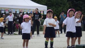 開会式ののダンスでは、普段から大きな声で歌いながらダンスをしていた子ども達。当日も楽しそうに歌いながらダンスを楽しんでいる姿がみられましたね!一生懸命歌って踊る姿がとても可愛らしかったです。
