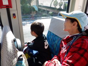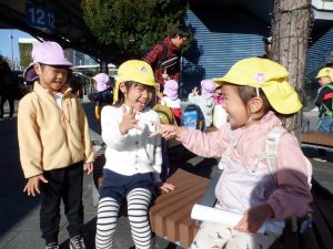 加納幼稚園の4歳児は、園庭や地域で捕まえたダンゴムシ、バッタ、カマキリなどの飼育を通して、生き物に大変興味をもっています。そこで、今日は実際に路線バスと地域のコミュニティバスを乗り継ぎ、森に出向きました。