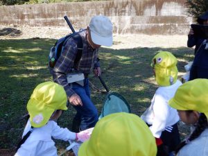 虫以外にも、キノコや草花など、幼稚園では見られない色々なものを見つけて楽しんでいました。