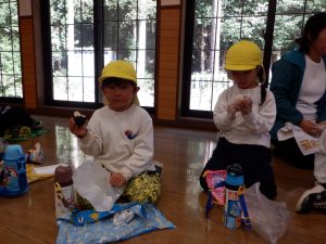 行きの途中から、「お腹すいた!」と楽しみにしている子もいた、おにぎりタイム!