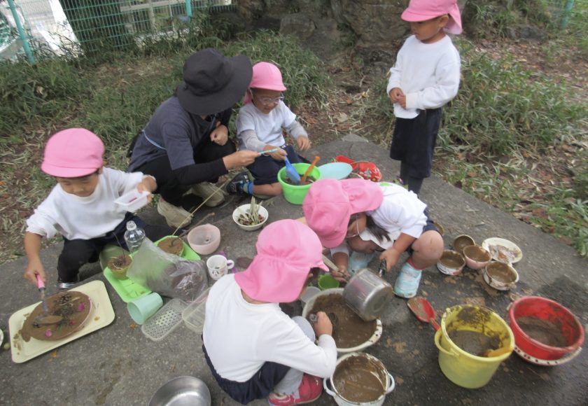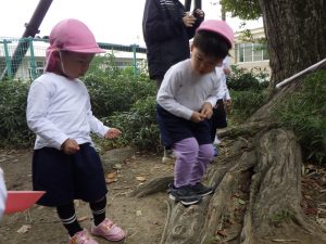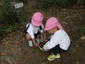 風が一気に冷たくなってきましたね。子ども達は園庭や思い出の森で、秋見つけや、パーティーをすることを楽しんでいます。