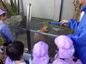特別にカピバラの餌やりの様子も見せてもらえました。この後、美味しいお弁当をみんなで食べて、公園で走り回って遊んで、大満足な1日になりました!