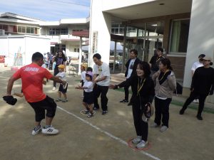 運動会の練習として。リレーや玉入れ、綱引きにドッジボール。最後は体操まで一緒にやれて