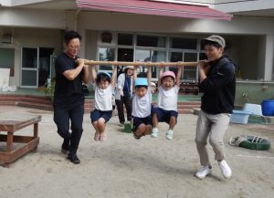 綱引きは大人の強さを見せつけようと本気で思っていたのですが、子どもたちが力を合わせるとめちゃくちゃ強いですね!やっててすごくビックリしました。大人の凄さはまた違う機会に見せつけます…
