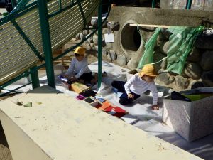 壁をカラフルにするためにひたすらチョークで壁に色付ける子など様々です。