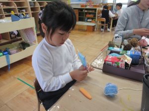 毛糸の飾りを作ったり、
