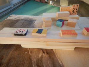 座面と足(長い棒)を金槌と釘でつけるのは至難の技です。