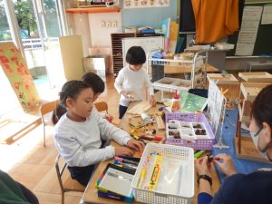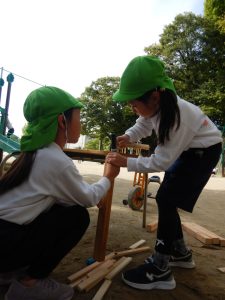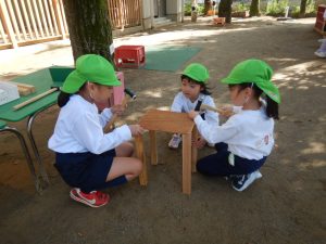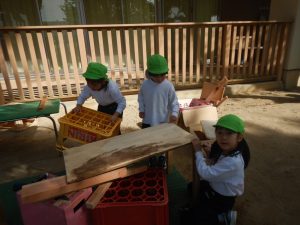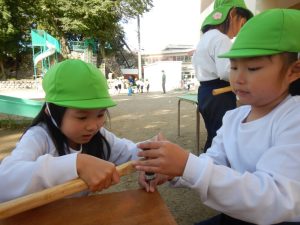 ここ3週間、さくら組では、秋の実や木工を使った遊びが盛り上がっています。