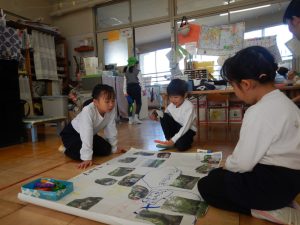 また、木曜日に行った幼小交流についても、”嬉しくて楽しい”気持ちでドキュメンテーション(掲示物)を作っています。