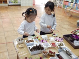 そして、秋の自然物を見たり、それを使った製作を楽しんでいます。