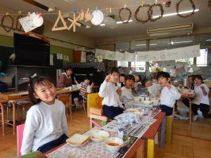 そして、いちょう組とさくら組の作った物を合わせると…あっという間に魅力的な空間に。