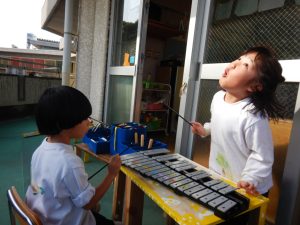 日当たりのいい場所を探して、ベランダで音を奏でたり、