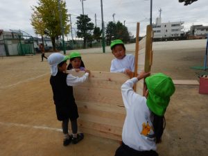 また、いちょう組では、お家ごっこの家(壁)をじっくりと作ったり、