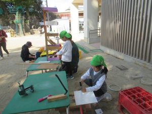 さくら組では、自分たちの椅子と机を作れた嬉しさから