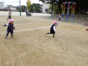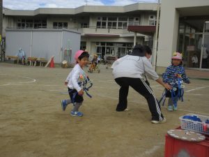 しばらくしっぽ取りをしていると、いちょう組の子達も一緒にしっぽ取りをすることになりました。その中でこんな場面がありました。