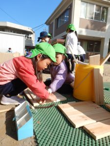 さくら組、いちょう組のお家(秘密基地)ごっこが続いています。