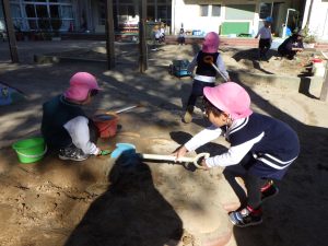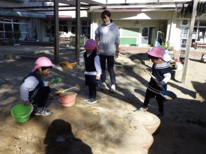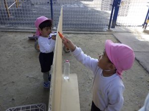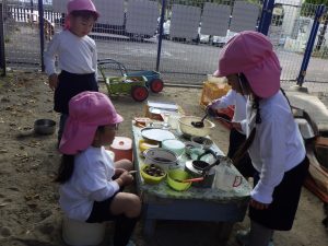 ごっこ遊びをする中で、集って遊ぶ機会が増え、友達同士のかかわりややり取りも広がってきたことがとても嬉しいです。これからも先生や友達と遊ぶことが楽しい!と感じることができるように遊びを工夫していきたいです。