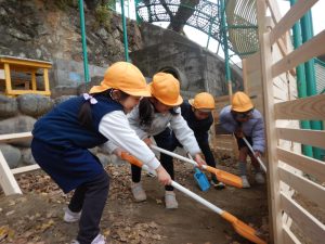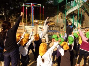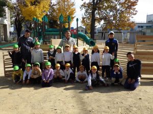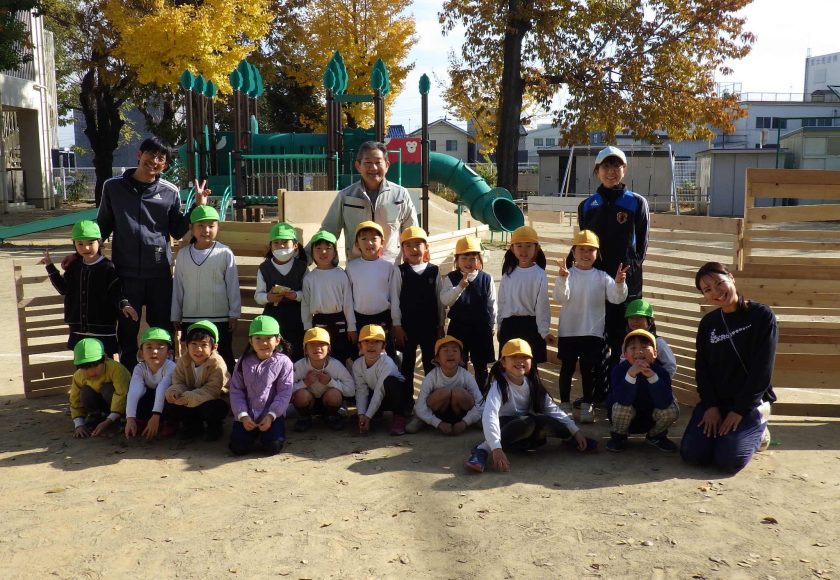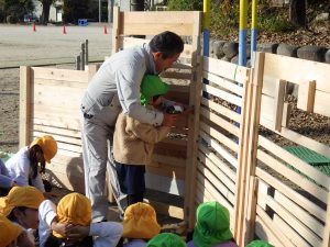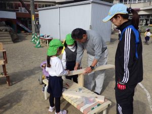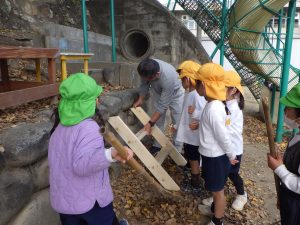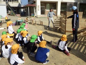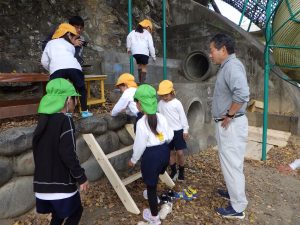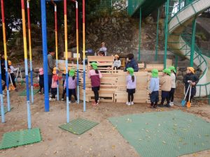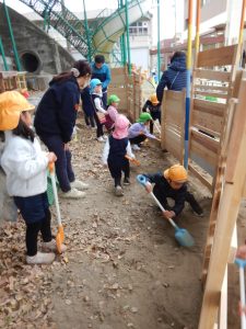 シャベル仕事も楽しそう!壁が立って、一気に家っぽくなりとても嬉しそうな子どもたちでした。