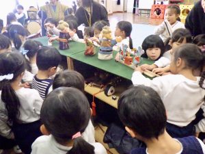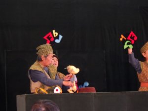 おむすびがコロコロ転がるお話では、前のめりになって人形の動きを見ていました。