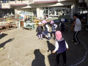 寒空の中、体を動かして遊んだり、日向ぼっこしながらのんびり過ごしたりしています。