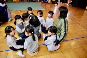 子ども達も綺麗な歌声にじゅうたんから思わず立ち上がったり、知っている歌を口ずさんで見たり、終わってからはたくさん拍手したりしていました。