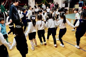 ゲームが終わってからは、給食前にみんなで踊っていたクリスマスの曲を踊りました。それぞれ踊る曲と