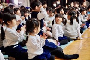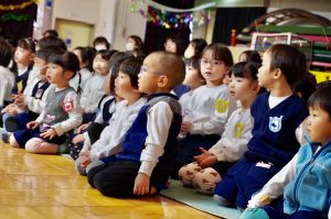 最後には年長さんが一緒に写真を撮ってもらい、楽しみ会は終わりました。