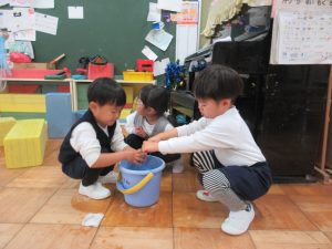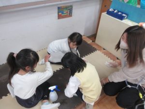 子どもたちは、先生と一緒に自分たちの保育室の掃除をしたり、好きな遊びをしたりしながら、過ごしました。