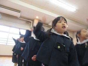 終業式では、元気な声で園歌やお正月にちなんだ歌を歌ったりしました。